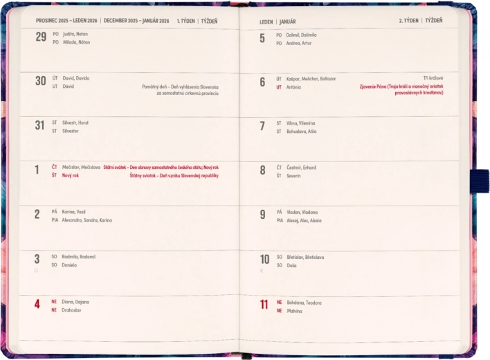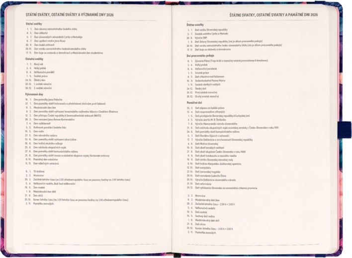 - Veertiendaags horizontaal kalendarium met Tsjechische en Slowaakse feestdagen voor overzichtelijke planning.