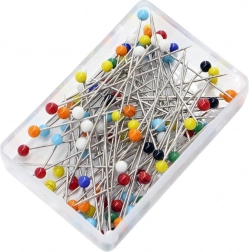 Praktische set van 100 spelden met gekleurde kop, een onmisbaar hulpmiddel voor elke kleermaker, hobbyist en liefhebber van naaien. Dankzij de esthetische kunststof koppen in felle kleuren zijn de spelden niet alleen aantrekkelijk, maar ook goed zichtbaar op de stof.