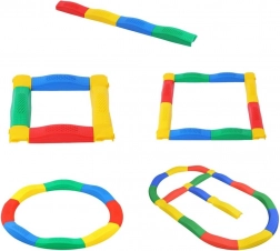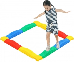De sensorische balansbaan bestaat uit 16 sensorische platen met een ruw, verhoogd oppervlak dat de voetreceptoren stimuleert, en 4 flexibele verbindingsstukken waarmee je diverse routes kunt creëren - van rechte lijnen tot gebogen circuits en gesloten vormen zoals een cirkel of vierkant.