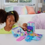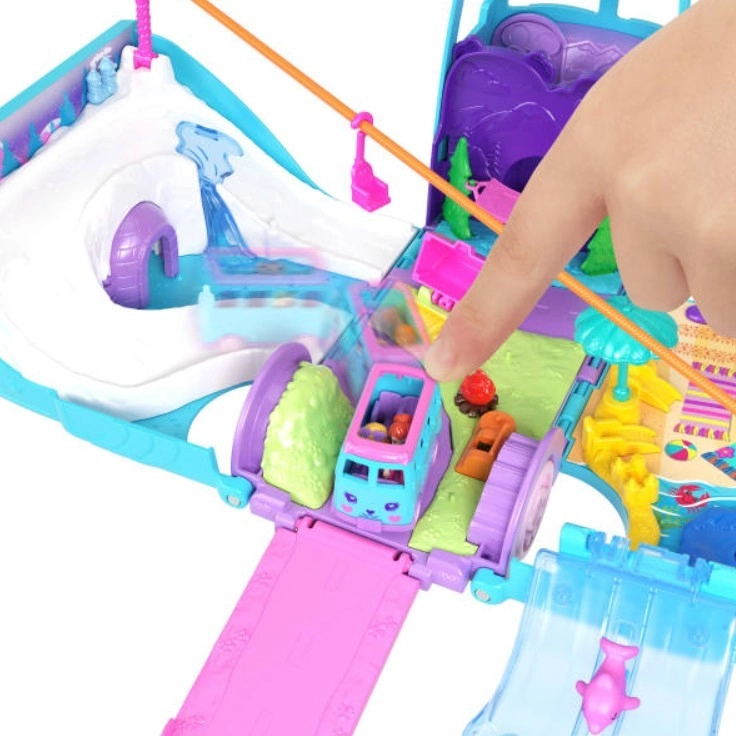 Beleef onvergetelijke avonturen in de natuur met Polly Pocket en haar Reisbusje. Versier je camper met schattige stickers en klap hem open om fascinerende functies en speelruimtes te ontdekken, zoals een skilift en golven om op te surfen!