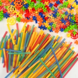 Kleurige buisjes en connectoren lichten op in het donker na blootstelling aan licht, waardoor elke constructie tot leven komt en kinderen motiveert om verder te creëren.
