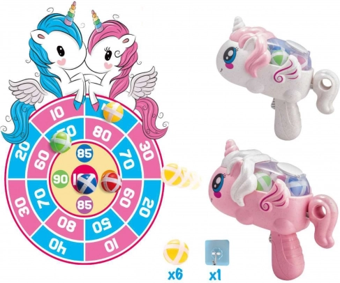Stap de magische wereld van competitie en behendigheid binnen met het spel van het merk WOOPIE! Deze betoverende set helpt je kind nauwkeurigheid en coördinatie te ontwikkelen op een veilige en fascinerende manier. De schieter in de vorm van een schattige eenhoorn schiet speciale balletjes af die zich magisch aan het dartbord hechten dankzij klittenband. Ideaal voor zowel binnen als buiten spelen, met uren meeslepende pret en perfect om de precisie te verbeteren!