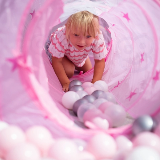 De zachte, opvouwbare tunnel met sterretjes nodigt uit om te klauteren en kruipen, waardoor de grove motoriek en coördinatie worden ontwikkeld. De lichte constructie is veilig en geschikt voor binnen en buiten.