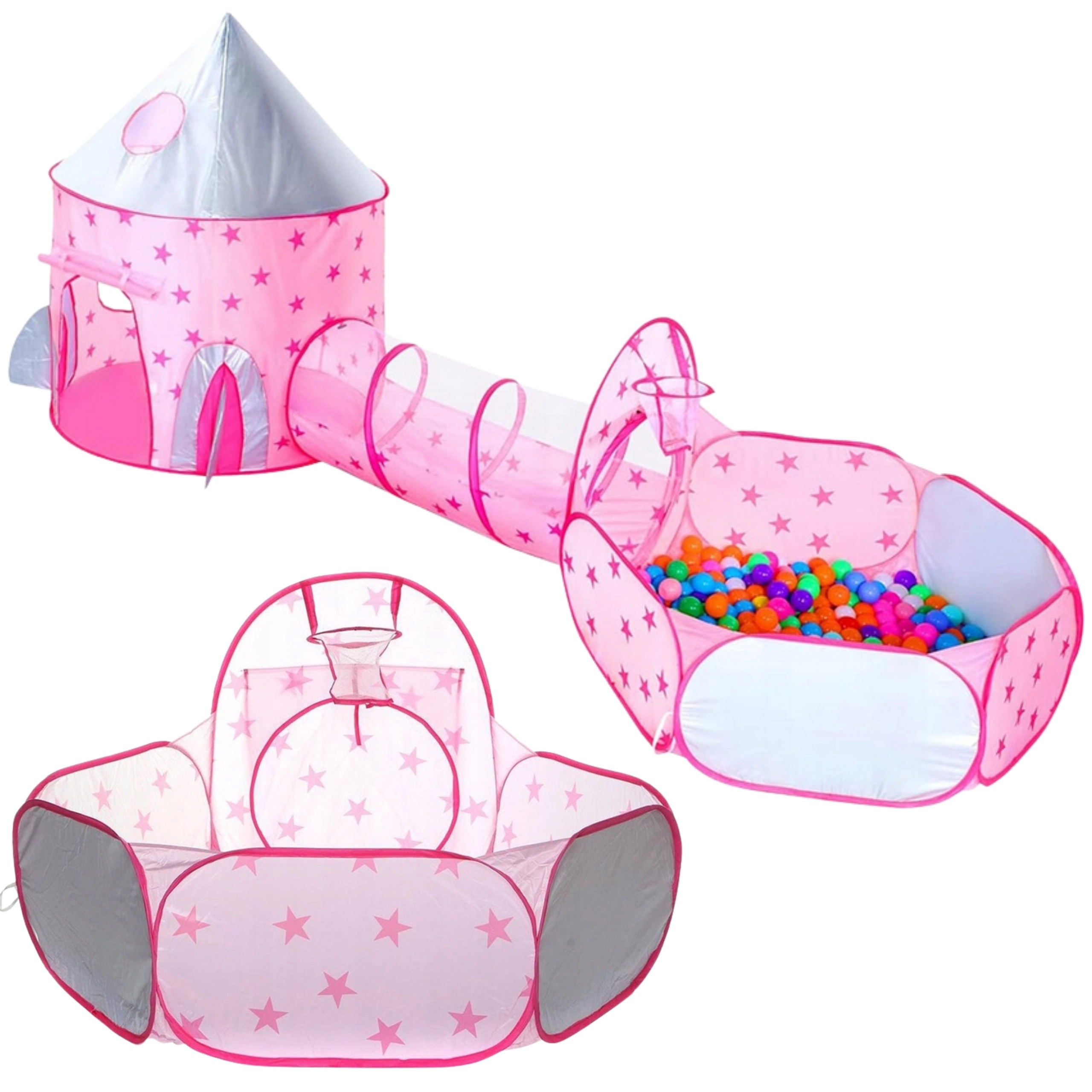 Creëer voor kinderen hun eigen koninklijke hoek met de 3-in-1 Woopie speelset. De majestueuze tent in de vorm van een kasteeltoren nodigt uit tot het vertellen van sprookjes, de tunnel stimuleert natuurlijke beweging en coördinatie en de droge ballenbak biedt een veilige plek voor ballen en eindeloos plezier (ballen niet inbegrepen). De lichte, opvouwbare constructie met flexibele verstevigingen maakt snel opzetten en inklappen en eenvoudig verplaatsen mogelijk.