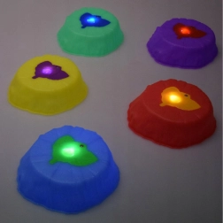 De set lichtgevende stenen van Woopie is ontworpen voor kinderen vanaf 3 jaar en zorgt voor veel speelplezier. Deze stenen lichten op door druk of beweging en zijn stabiel op verschillende oppervlakken zoals tapijt, vloer of gras.