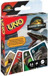 Ontdek avontuur in je favoriete spel UNO, nu met een Jurassic World-thema. Duik in de wereld van dinosaurussen en geniet van de bekende kaartwendingen verrijkt met motieven uit de geliefde filmserie.