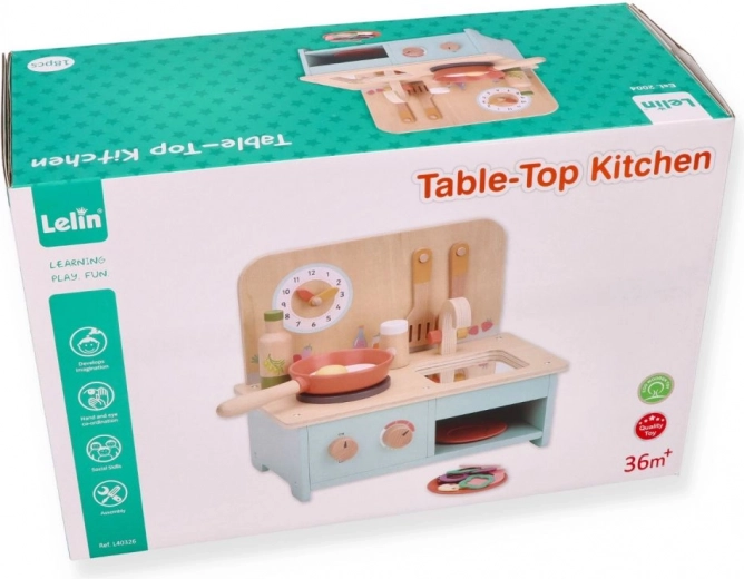 De keuken is ontworpen om motorische en coördinatievaardigheden te ondersteunen bij kinderen vanaf 3 jaar.