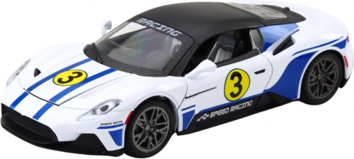 De auto is uitgerust met lichteffecten in de koplampen en realistische motorgeluiden, die worden geactiveerd door op de motorkap te drukken. De frictie-aandrijving laat de auto vooruit rijden na een lichte duw, wat zorgt voor dynamisch speelplezier.