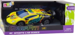 Deze op afstand bestuurde sportwagen in schaal 1:22 is perfect voor kinderen die dromen van hun eigen racebaan. Het moderne design in vrolijke kleuren met graffitimotieven valt op en geeft de auto een uniek karakter. De sportieve silhouet en carrosseriedetails zorgen ervoor dat het model indrukwekkend oogt, niet alleen tijdens het rijden maar ook als showstuk op de plank.