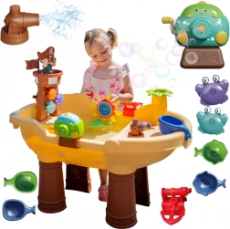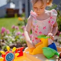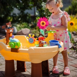 De set bevat een piratentoren met kraaiennest, een piratenfiguurtje, een anker, gietbekers en drijvende diertjes, die zintuiglijk spel, oog-handcoördinatie en creativiteit stimuleren. De grote speelruimte maakt comfortabel samenspelen met meerdere kinderen mogelijk en de eenvoudige constructie vergemakkelijkt het legen en het onderhoud.