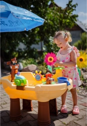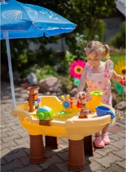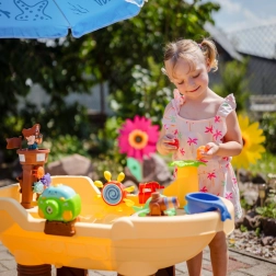 De robuuste kunststofconstructie is eenvoudig te monteren, snel te legen en schoon te maken. Dankzij de XL-afmetingen is de tafel ideaal voor broers en zussen en vriendjes, en bevordert hij fijne motoriek, coördinatie en verbeelding via sensorisch spel met water.
