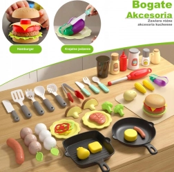 Pannetjes, gereedschap, bordjes, bestek en diverse grill-voedingsmiddelen stimuleren de fantasie en ontwikkelen de fijne motoriek.