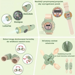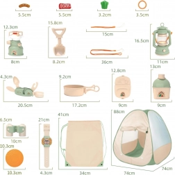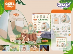 De kampeerset van het merk Woopie biedt verschillende realistische accessoires die kinderen een authentieke kampeerervaring geven. De set is uitsluitend bedoeld voor speeldoeleinden en niet geschikt voor echt kamperen.