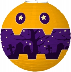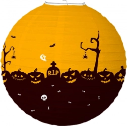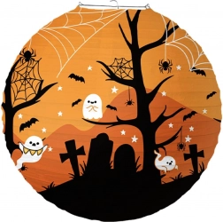 Geef je Halloween-decor de juiste sfeer met een ronde papieren lampion met een diameter van 30 cm. Dankzij de lichte constructie, het eenvoudige ophangen en de griezelige motieven zoals pompoenen, geesten, vleermuizen en begraafplaatsen creëer je in een mum van tijd sfeervolle ambientverlichting voor feestjes en in het raam.