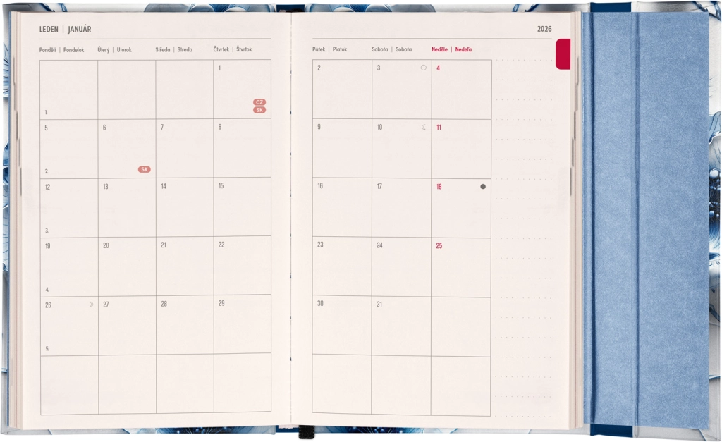 De wekelijkse agenda met magnetische sluiting is perfect voor iedereen die hun plannen onder controle wil houden. Het beschikt over een horizontale opmaak met een weekkalender aan beide kanten en ruimte voor notities.