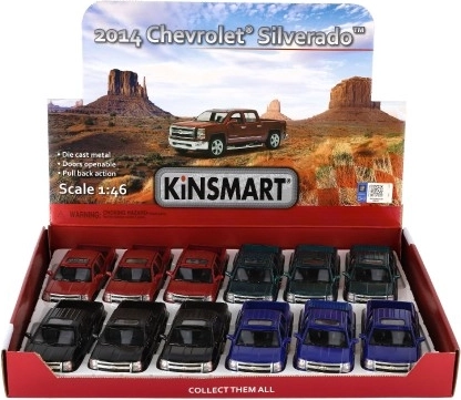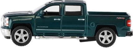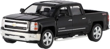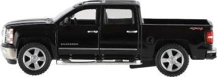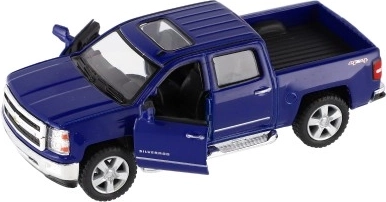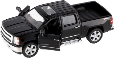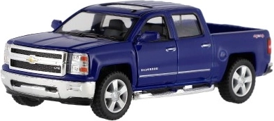 Geniet van een gedetailleerde replica van de iconische pick-up CHEVROLET Silverado 2014. Metalen carrosserie met kunststof details, precieze lak en natuurgetrouwe verhoudingen zullen zowel jonge bestuurders als verzamelaars bekoren. Het autootje heeft openende deuren, zodat je het fraai uitgewerkte interieur kunt bekijken.