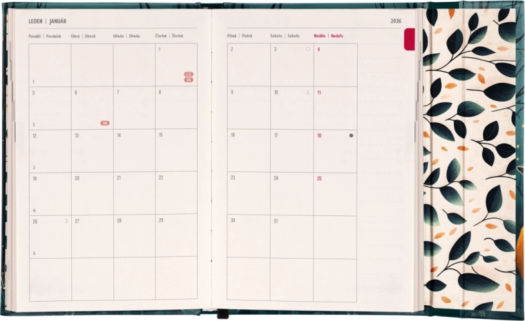 Houd je plannen georganiseerd met de wekelijkse agenda Liška 2026. Deze agenda met praktische magnetische sluiting biedt gemak in dagelijks gebruik. Dankzij de horizontale lay-out heb je op twee pagina's voldoende ruimte voor alle belangrijke notities.