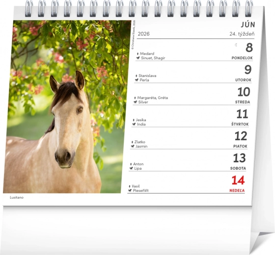 Geniet van elke dag van 2026 met de Notique‑kalender, die de schoonheid en elegantie van paarden rechtstreeks op uw bureau brengt. Deze bureaukalender van 16,5 x 13 cm is praktisch en tegelijkertijd esthetisch aangenaam.