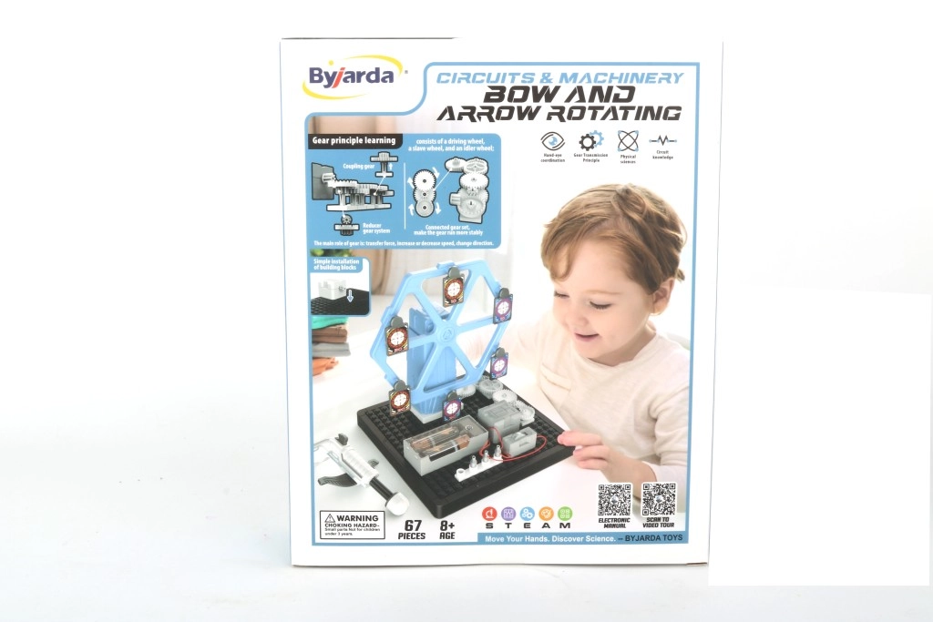 Ontdek een speelse weg naar techniek met een experimentele bouwset die elektrische schakelingen, tandwielen en een motor combineert. Kinderen ervaren de principes van krachtoverdracht, versnelling en vertraging en serieschakeling. De set met 67 delen en 6 roterende schijven stimuleert creativiteit, logisch denken en praktische vaardigheden.