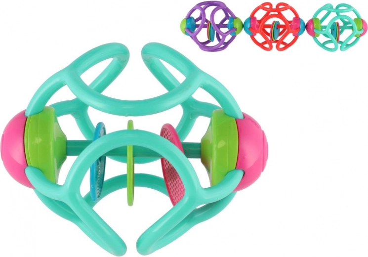 Licht en kleurrijk rammelaar in de vorm van een bal, dat ook dient als een bijtring. Makkelijk vast te houden en zacht rammelend, wat de zintuiglijke ontwikkeling van het kind stimuleert.