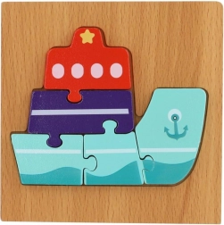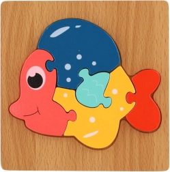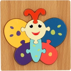 Populaire houten inlegpuzzel met dieren die de vaardigheden van kinderen ontwikkelen. Helpt bij de ontwikkeling van motoriek, logisch denken en het herkennen van vormen.