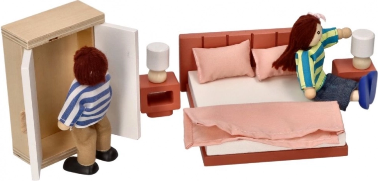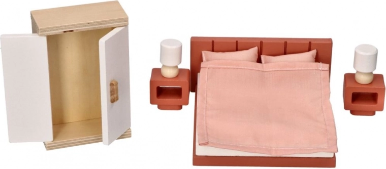 Richt het poppenhuis in met een prachtige slaapkamer, met gedetailleerde replica's van echt meubilair. Deze meubelset is ideaal voor kinderfantasieën en biedt talloze speelscenario's.