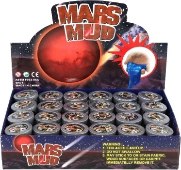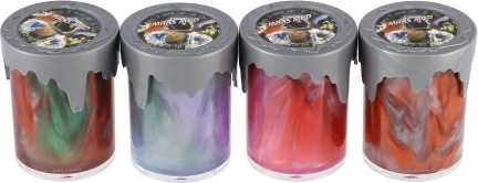 Het metallic slijm Mars Mud is leuk voor kinderen én volwassenen. Het heeft een aangename, langzaam vloeiende consistentie die zich uitstekend laat vormen, uitrekken en knijpen. Het transparante potje accentueert de originele kleurwervelingen en de metallic glans.