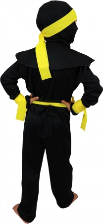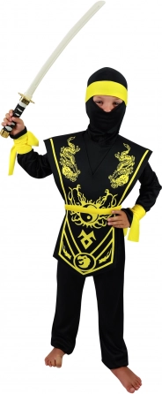 Kostuum gele Ninja in maat M is de perfecte keuze voor kleine strijders van 6-8 jaar. Bevat alle benodigde accessoires voor een complete carnavalslook.