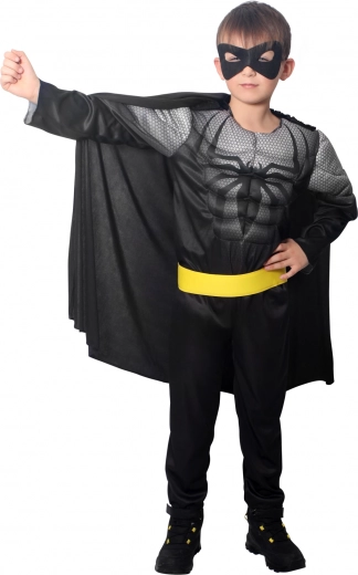 Dit kostuum biedt de perfecte gelegenheid om op elk feest of carnaval een spinnenstrijder te worden. De zwarte en grijze overall samen met een afneembare cape en een stoffen oogmasker vormen een complete outfit voor kleine superhelden. Zo kunnen kinderen de rol van een favoriete held in een fantasiewereld uitproberen.