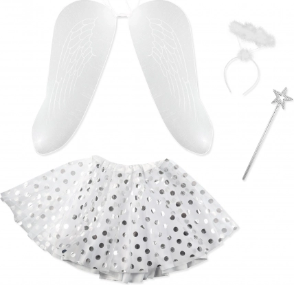 Dit schattige kostuum is ideaal voor alle kleine prinsesjes van 3-7 jaar. De witte uitvoering met een luchtige rok en aantrekkelijke details zorgt ervoor dat je dochter zich als een echte engel voelt.