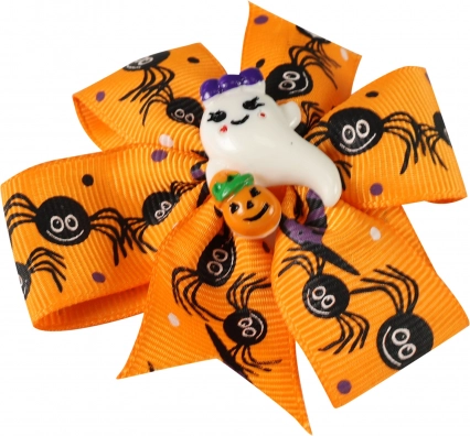 Oranje haarspeld met spook, perfect accessoire voor Halloween, origineel en eenvoudig in gebruik. Geef je look extra stijl.