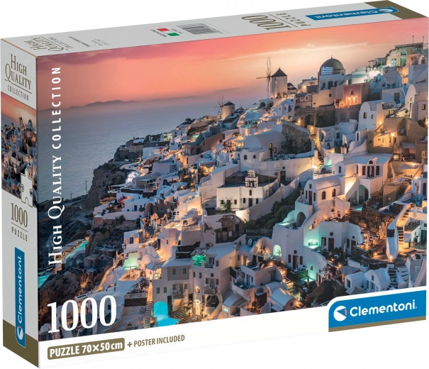Clementoni Puzzel Tintenschakeringen van Santorini met 1000 stukjes, toont de schoonheid van Santorini, afmeting 70x50 cm.