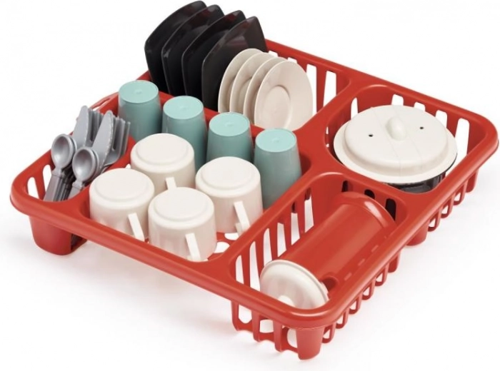 Deze kinderservies set met afdruiprek maakt van elke keukenhoek een plek vol fantasie. Kinderen kunnen zich onderdompelen in het spel en volwassenen nadoen bij het koken en serveren.