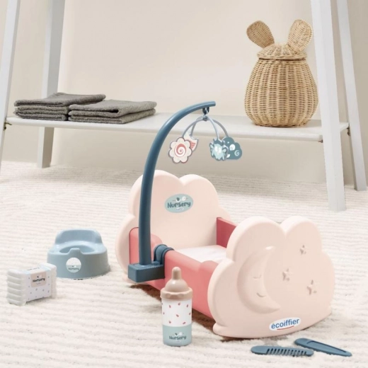 • Accessoires: bevat een mobiel boven het bedje, een flesje, een potje en een kam.
