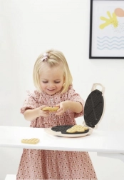 Dit wafelijzer is ideaal voor kinderen die willen experimenteren met bakken. De set bevat alles wat je nodig hebt om heerlijke wafels te bereiden. Het wafelijzer, met afmetingen van 21 x 17 x 5 cm, wordt geleverd met verschillende accessoires. Je kunt kiezen tussen het maken van wafels met jam of chocoladetopping. De verpakking bevat ook servies voor twee, eieren, melk en een kom met garde.