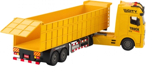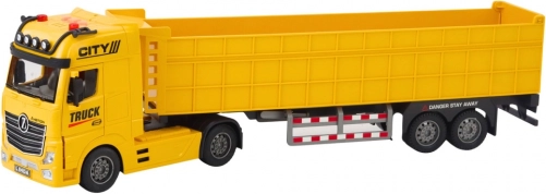 De gele vrachtwagen biedt een effectief en dynamisch model waar alle fans van grote voertuigen dol op zullen zijn. Met realistische functies zoals een schuifbare oplegger kun je scenario’s spelen zoals vrachtvervoer of werken op een bouwplaats.