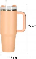 Het duurzame ontwerp van een combinatie van roestvrij staal en kunststof belooft een lange levensduur en bestendigheid tegen beschadigingen. De handgreep zorgt voor veilig dragen, en er wordt een rietje meegeleverd voor comfortabel drinken zonder het deksel te hoeven verwijderen. Ideaal als cadeau voor enthousiaste reizigers en bewuste gebruikers.