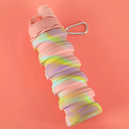 Deze sportfles is een geweldige metgezel voor je actieve levensstijl. Hij heeft een verstelbaar volume dankzij de opvouwbare constructie, waardoor je kunt vullen van 250 ml tot 500 ml. De afsluitbare drinktuit zorgt voor comfortabel drinken zonder morsen en het aantrekkelijke ontwerp in roze, geel en paars motiveert je om voldoende te drinken.
