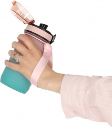 Het deksel met "klik"-sluiting zorgt ervoor dat er geen water uitlekt, en de brede lus maakt het gemakkelijk om de fles overal mee naartoe te nemen.