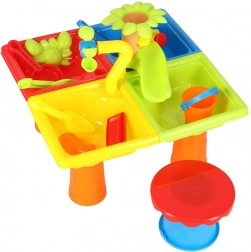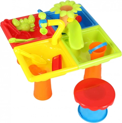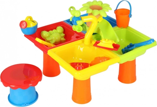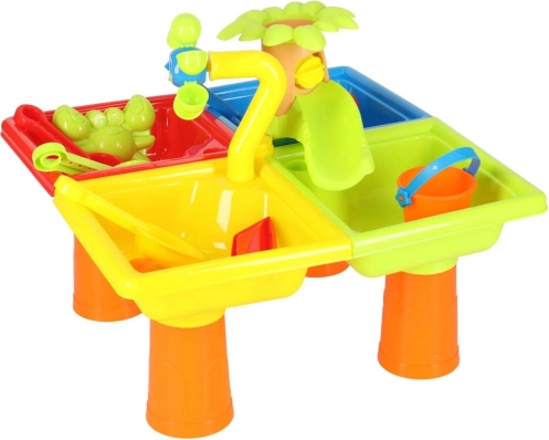 De watertafel en zandbak in één is ideaal voor de tuin, het terras of het balkon. De tafel met gescheiden compartimenten laat kinderen spelen met zowel water als zand. Kinderen kunnen hun eigen waterhaven creëren en zich ook op het strand nooit vervelen.