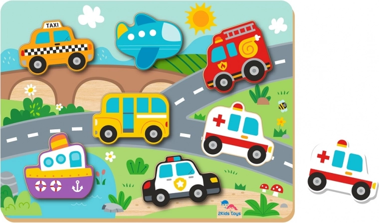 Deze inlegpuzzel is een geweldige tool voor de ontwikkeling van fijne motoriek en het leren kennen van vervoersmiddelen bij kinderen. Het bevat 7 inlegstukken en kleurrijke illustraties, wat dit speelgoed niet alleen een leuk element maakt, maar ook een mooie decoratie voor de kinderkamer.