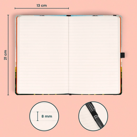 Binnenin vind je 172 gelinieerde pagina’s van hoogwaardig crèmekleurig papier voor al je ideeën en aantekeningen.