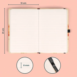 Notitieboek met harde kaft uit de collectie van Kateřina Winterová, ideaal voor al je ideeën en aantekeningen. Bevat 172 gelijnde pagina’s op crèmekleurig papier en is voorzien van een elastische sluiting en een opbergvak voor kleinigheden.