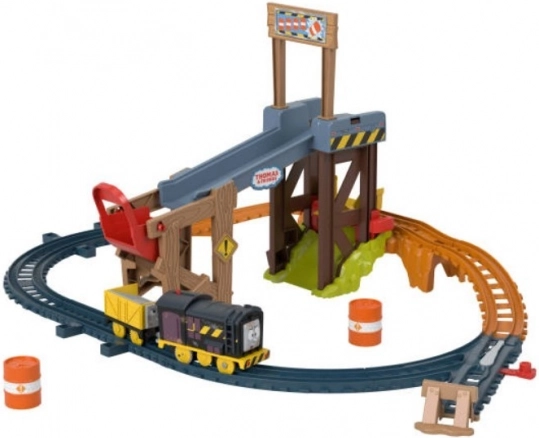 Speelset met laadthema voor kinderen met personages uit Thomas en zijn vrienden: de batterijlocomotief Diesel en een Goederenwagen. Schuif de schakelaar op het dak van Diesel om hem over de baan te laten rijden, waar hij vaten kan laden en ze terug kan vervoeren naar de lift en de helling.