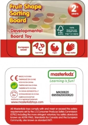 De Vormensorteerder Gekleurd Fruit van Masterkidz is een geweldig houten speelgoed met veel doeleinden. Het zorgt niet alleen voor plezier, maar maakt het ook mogelijk om fruitnamen te leren en de fruitconsumptie te stimuleren. Het kind moet de afzonderlijke vruchten matchen met de bijbehorende openingen in de houten plaat, wat concentratie en vormanalyse vereist. Deze activiteit draagt tevens bij aan de ontwikkeling van coördinatievaardigheden.