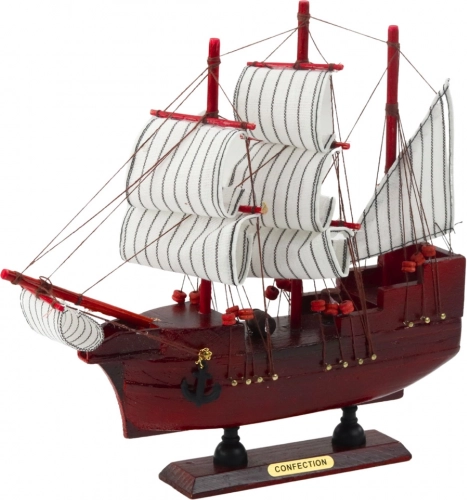 Elegant decoratief model van een driescheepsmast in bordeaux – stijlvolle toevoeging voor ieder interieur, ideaal als cadeau.
