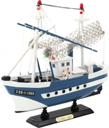 Het model van de visserskotter “Flying Lady” brengt een perfecte touch van kustsfeer in uw interieur. Met zijn karakteristieke wit-blauwe romp, een stuurhut met realistisch dakje en decoratieve vissersnetten is het ontworpen als een stijlvol decoratief accent.