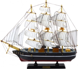 De historische driemaster is een replica in decoratieve stijl waar alle liefhebbers van maritieme geschiedenis van zullen houden. De zwarte romp met fijne details, de witte textielen zeilen en de totale constructie bieden elegantie en tijdloosheid die elk interieur completeren, of het nu een woonkamer, studeerkamer of vitrinekast voor verzamelaars is.