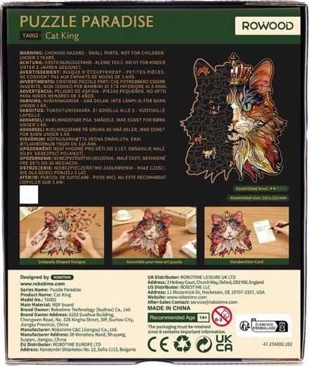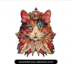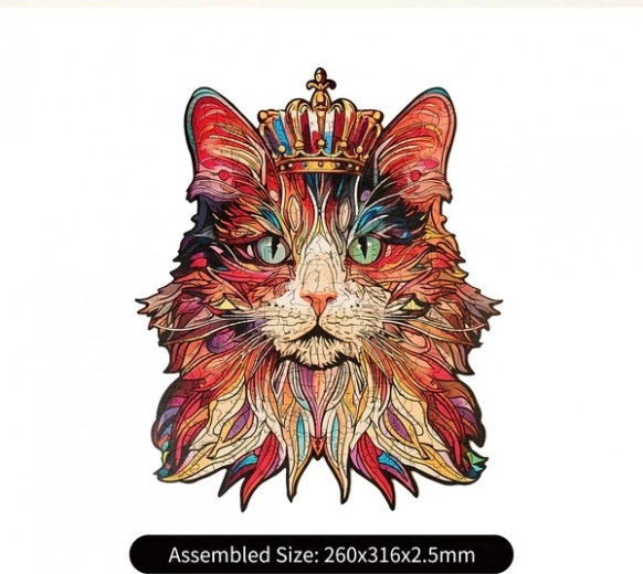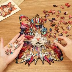 Stap binnen in de wereld van artistiek puzzelen met de houten puzzel Kattenkoning. Elk stukje is zorgvuldig laser-gesneden, wat perfecte precisie en eenvoudig leggen garandeert. Dankzij het hoogwaardige hout kun je keer op keer van dit juweeltje genieten. De puzzel ontwikkelt je fijne motoriek en biedt plezier voor het hele gezin.