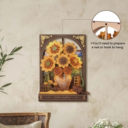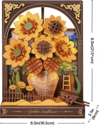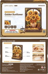 3D houten puzzel Gouden Zonnebloemen biedt een betoverende decoratie met subtiele LED-verlichting voor dagelijks plezier. Brengt een positieve sfeer en comfort in uw huis.